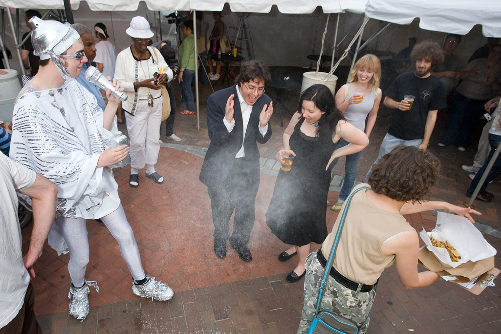 The Trans-Millennial Conquistadors - Scott Andrew, Adam Atkinson, Michael McParlane and Josh Tonies - have arrived from the Giant _ag_e in the Pittsburgh of June 2008, ready to disrupt the fabric of space-time with their contagious future-diseases, inflatable time pods and - finally - a climactic, cacophonous time transit!!!!!!!